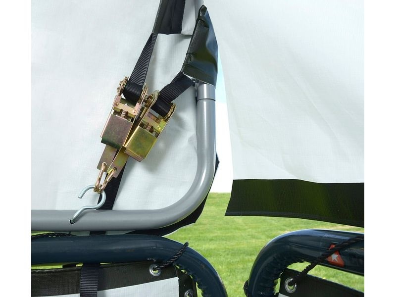 Plachtové bočnice pro přístřešek pro koně je dodáván bez ocelového rámu. Boční plachty jsou určeny na ocelový rám o rozměrech š. 3,7 m × v. 1,5 m a na zadní stranu přístřešku o rozměrech š. 3,7 m × 1,7 m.