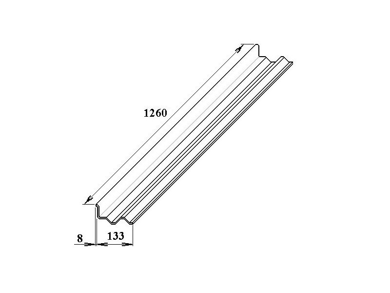 Čirý boční příložník pro trapéz TR 76/16 a TR 76/18 řady Marlon CSE. Vyrobeno z polykarbonátu. Slouží jako přechodový boční prvek mezi střechou z trapézových PC desek a stěnou. Cena za 1 ks v délce 126 cm.