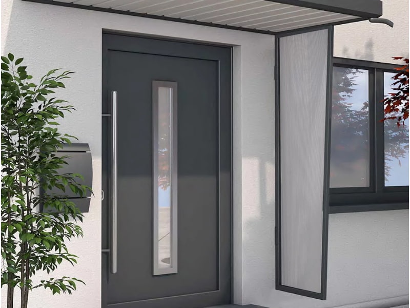 Možnost dokoupení vchodové stříšky ve stejné barvě, v jaké jsou nabízené bočnice.