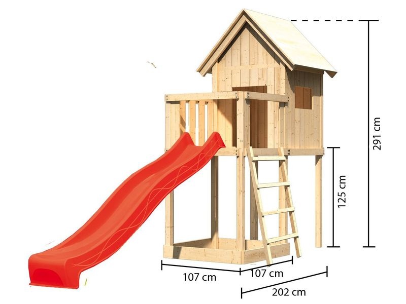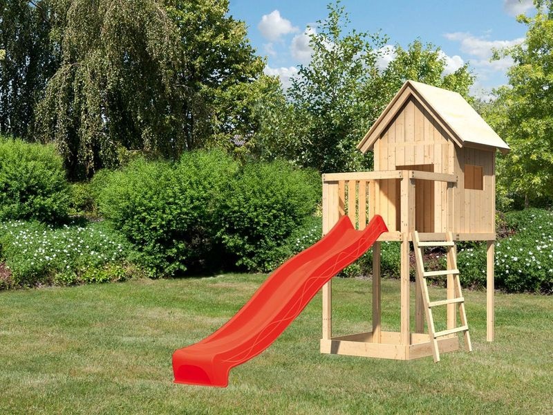 Dětské hřiště Karibu Frieda přináší vašim dětem bezpečnou a zábavnou herní plochu s dlouhou životností. Věž, dřevěná rampa, skluzavka a prostor pro pískoviště pos­kytnou dětem spoustu možností ke hrám a zaručí zábavu na dlouhé hodiny.