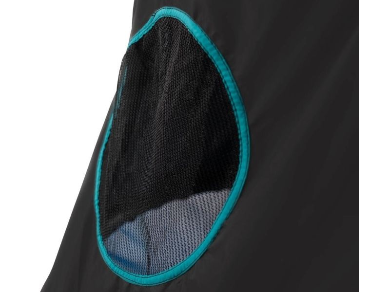 Závěsná houpačka je bezpečně spojena s prolézačkou a je vyrobena z prodyšného polyesteru odolného proti povětrnostním vlivům. Vstupní dveře lze uzavřít, což nabízí ještě větší pocit tajuplnosti.