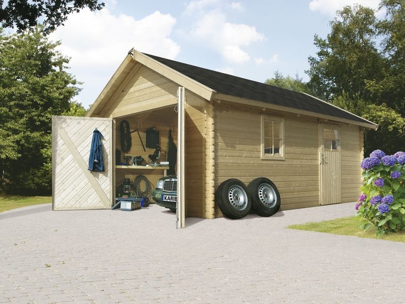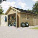 Dřevěná garáž z přírodního dřeva pro menší vozidlo. Tloušťka stěny 40 mm poskytuje jistotu a stabilitu bytelné dřevostavby. Pohodlný vjezd do garáže zajišťuje velká dvoukřídlá brana o rozměrech 238 x v 193 cm (š × v). Nemusíte se tedy obávat, že byste při couvání museli složité manévrovat.
