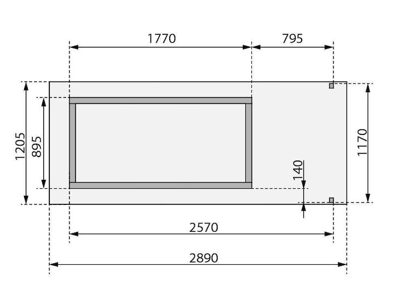 Tato verze domku obsahuje přístavek délky 1,11 m montovatelný zprava.