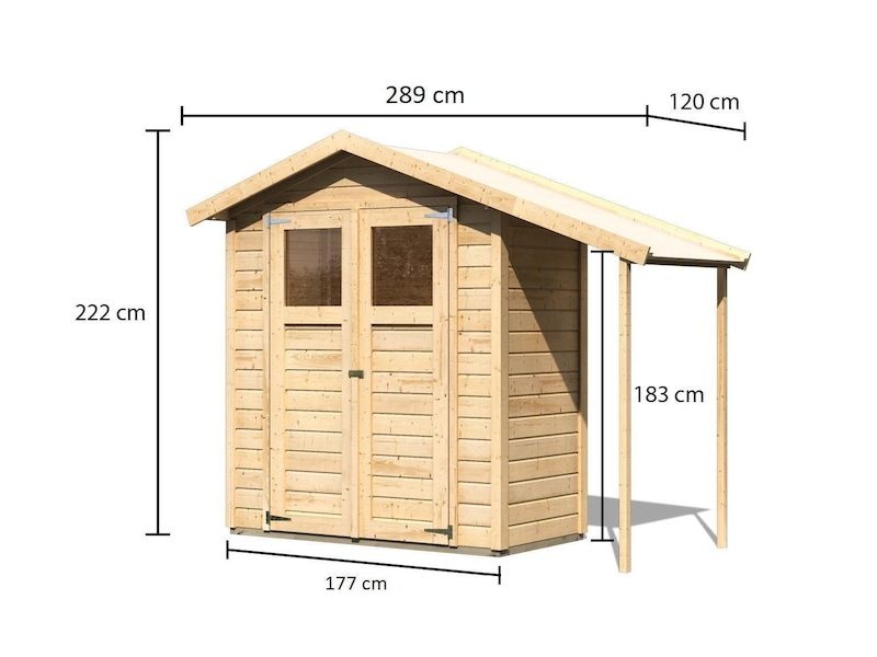 Základní model dřevěného domku pro vaši zahradu. Tento model má sedlovou střechu a dvoukřídlé dveře na pantech s oknem v každém křídle. Stavebním materiálem domku jsou dřevěné profily o síle 14 mm perfektně vyfrézované ze severského smrku.