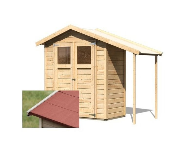 Tento model domku dodáváme s FINÁLNÍ ČERVENOU STŘEŠNÍ SAMOLEPÍCÍ BITUMENOVOU KRYTINOU (3,3 mm) jako dárek. V balení je veškeré potřebné kování.