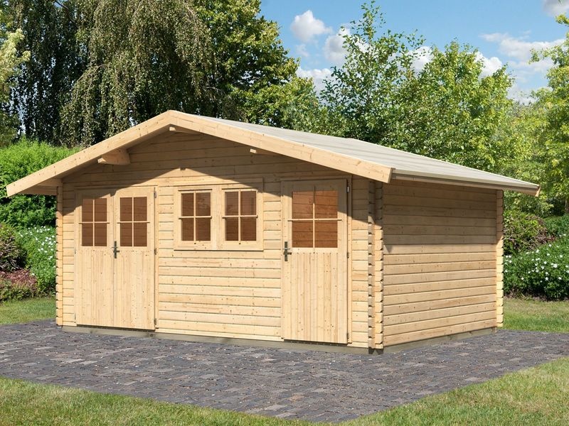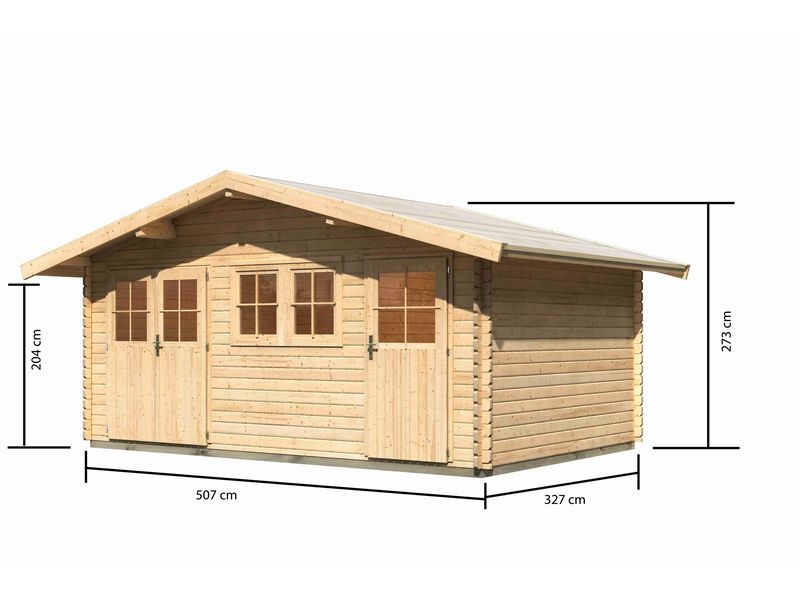 Dřevěný zahradní domek s kvalitnější silnější stěnou. Tento model má sedlovou střechu a dvoukřídlé dveře na pantech s oknem v každém křídle. Stavebním materiálem domku jsou dřevěné profily tl. 38 mm perfektně vyfrézované ze severského smrku.