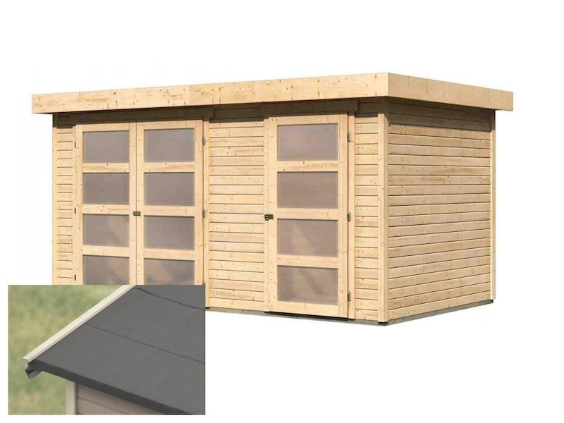 Na ploché střechy lze použít samolepící střešní hliníkovo-bitumenovou fólii (vše naleznete v menu příslušenství k domkům). U střech se sklonem >15o je vhodný i bitumenový šindel.
