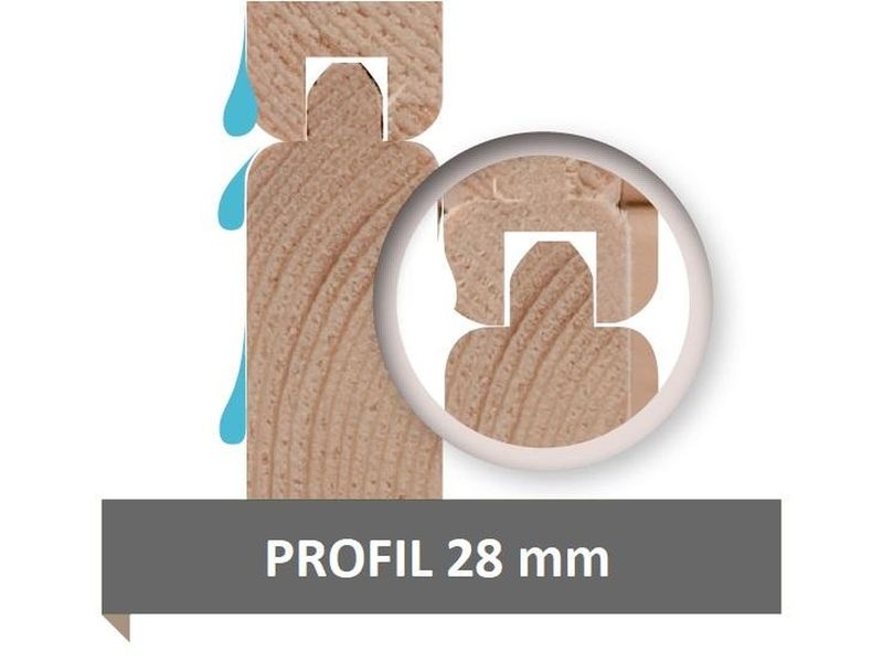 2. Profesionální nátěr Karibu (tmavě šedá RAL 060 40 05): Dřevěné profily jsou z vnější strany již ve výrobě opatřeny kvalitní vodoodpudivou barvou, která ochrání dřevo před UV zářením a nežádoucími vlivy počasí.
