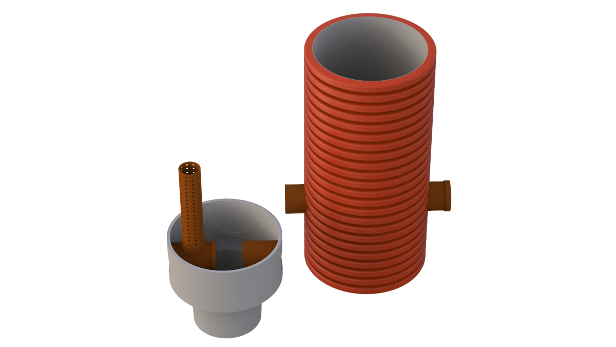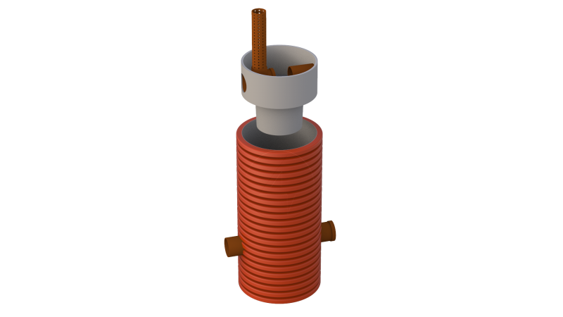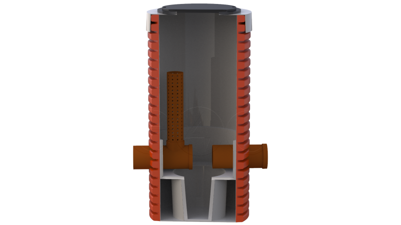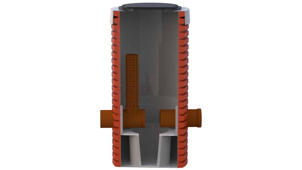 Jediná samonosná konstrukce tohoto typu. Filtr, instalovaný v délce přítoku a před nádrží, dovoluje účinně oddělit pevné nečistoty z dešťové vody. Skládá se z pláště s průměrem 680 mm a usazovací nádrže s košem na znečištění s objemem 15 litrů.