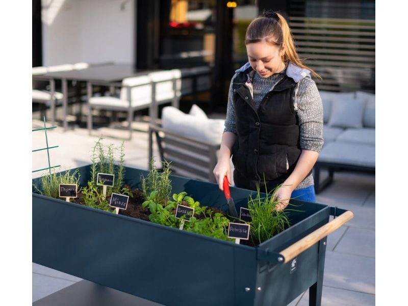 Tento moderní záhon je svou velikostí ideální pro terasy, balkony a zahrady a díky kolečkům a madlu jej lze lehce přemisťovat. Vhodný pro výsadbu rostlin všeho druhu, včetně bylinek. Svou výškou zajistí také komfort pro záda při péči o vaši zeleň.