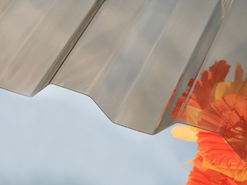Trapézové desky z polykarbonátu o síle 0,8 mm jsou úplně hladké, průhledné, bez povrchové krupičky. Polykarbonátové desky dodáváme v čiré nebo v průhledné kouřově hnědé barvě.