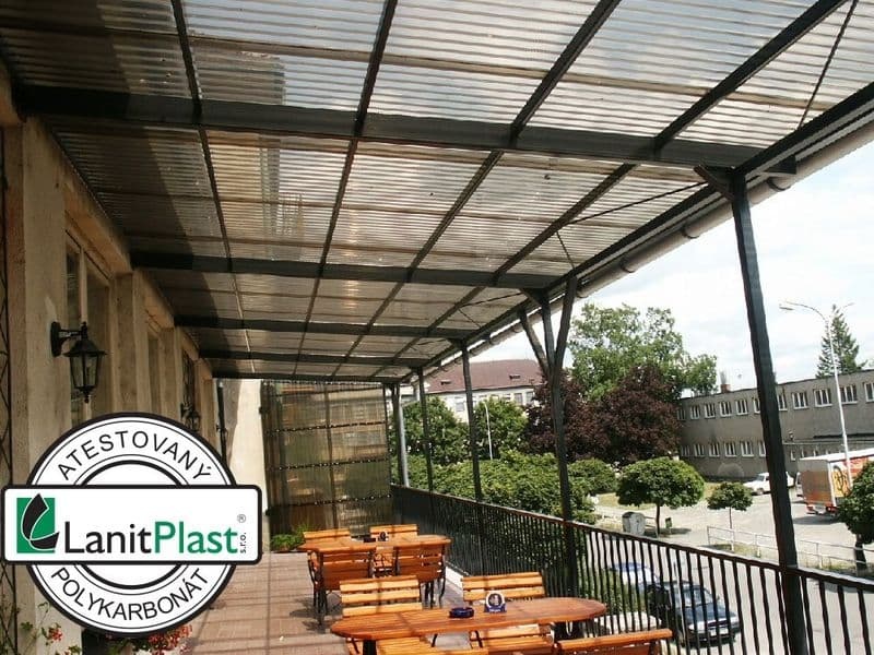 Trapézové polykarbonátové desky MARLON CS 2UV se používají v soukromém sektoru pro nerozbitná zastřešení přístřešků zejména v případech, kdy situace vyžaduje maximum průchozího světla.