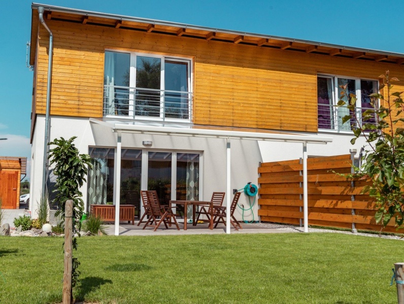 Hliníková pergola Gutta Terrassendach Original byla vyrobena v Německu. Jedná se o originální výrobek, nikoli levnou asijskou napodobeninu. Na zastřešení pergoly se používá zdravotně nezávadný polykarbonát Guttagliss.
