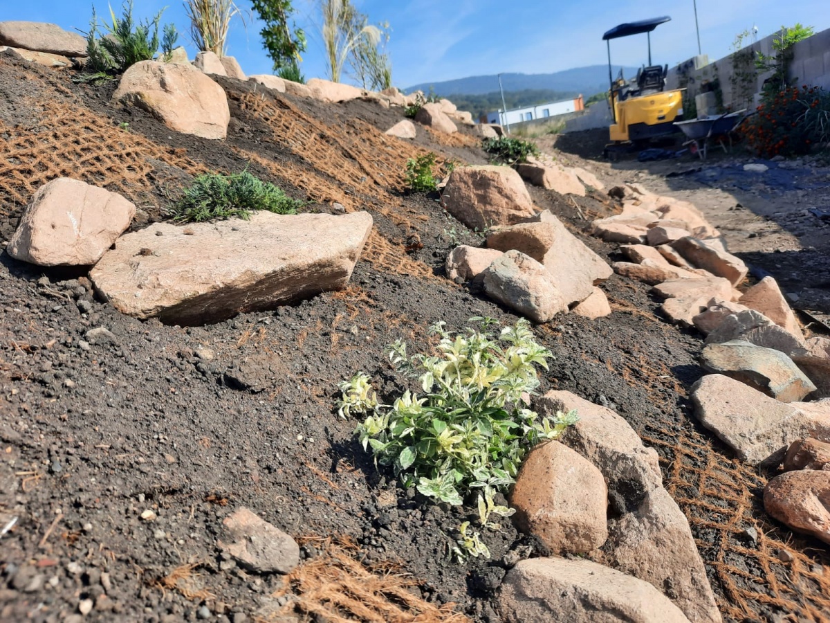 prosím o radu. Na jaře jsme na mírném svahu vybudovali skalku (skalničky, drobné keře a jehličnany), kterou jsme zpevnili rozmístěním vápencových kamenů o velikosti 30 - 40 cm. Bohužel při prudkých deštích dochází k erozím a splavování hlíny. Nyní zvažujeme na svah natáhnout kokosovou geotextilií. Jak máme postupovat? U keříku se bude muset textilie nastřihnout (jak?) a co kolem kamenů? Máme položit kameny na textilii? Děkuji moc za odbornou radu. Hezký den