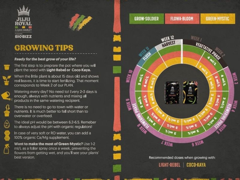 Lehce hnojený kokosový substrát Biobizz Juju Royal Coco Kaya je možné bez jakékoliv přípravy rovnou použít. Je vyroben z optimalizované směsi kokosu s rašelinou (75 %), perlitem (25 %) a živinami. Zároveň narozdíl od klasických kokosových substrátů Biobizz Juju Royal Coco Kaya zadržuje veškerou vlhkost, aby mohly rostliny vzkvétat.