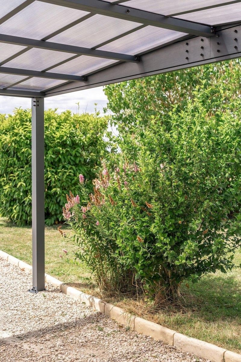 Celohliníkový přístřešek ke zdi poslouží jako garážové stání pro váš automobil. Přístřešek můžete využít i na uskladnění zahradního traktůrku nebo zahradní mechanizace, popřípadě poslouží i jako přístřešek pro zahradní posezení.