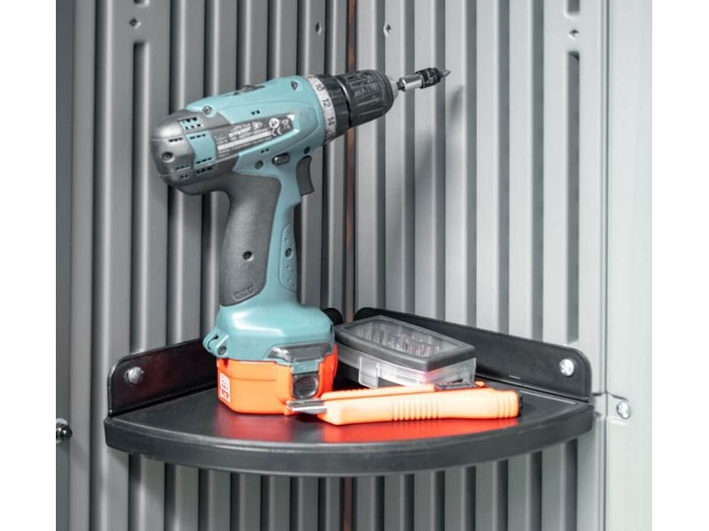 Součástí domku je police (76 × 25 cm), na které můžete uschovat například kufr s nářadím. Dále také dvě rohové police, které poskytují plný komfort.