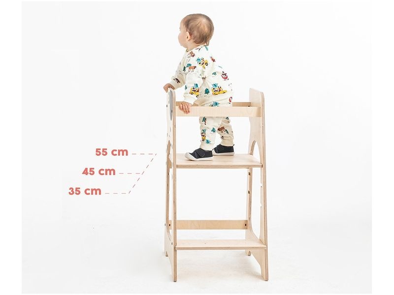 Dřevěná výuková věž Dog od MamaToyz je navržena tak, aby vašemu dítěti poskytla nové zážitky a podporovala jeho vývoj. Díky této věži se váš malý průzkumník může bezpečně zapojit do každodenních aktivit, posilovat motorické dovednosti a objevovat svět z nové perspektivy. Výšku věže lze nastavit ve třech úrovních (35 cm, 45 cm, 55 cm), takže roste spolu s vaším dítětem a přizpůsobí se jeho potřebám a vývoji.
