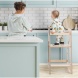 Učící věž je vyrobena z certifikované udržitelné březové překližky, která zajišťuje robustnost a odolnost. Materiál je neošetřený, bez použití chemikálií, což zaručuje maximální bezpečnost pro vaše dítě. Díky zaobleným hranám je věž pohodlná a bezpečná pro každodenní použití.