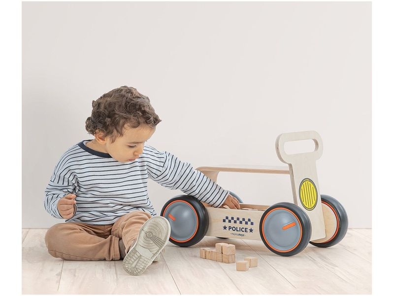 Policejní auto a chodítko od MamaToyz je ideální kombinací zábavy a učení pro vaše malé objevitele. Toto roztomilé a všestranné dětské vozítko podporuje motorický vývoj, zatímco poskytuje hodiny zábavy. Díky svému promyšlenému designu je bezpečné a skvělé pro děti od 12 měsíců do 3 let. Můžete také utáhnout nebo povolit všechny dřevěné kola a ovlivnit tak rychlost otáčení pneumatik. Pod robustním sedadlem je dostatek úložného prostoru pro vašeho oblíbeného plyšáka, stavebnice atd. Díky tomu se z pojízdného auta a chodítka během okamžiku stane mini vozík vhodný pro děti.