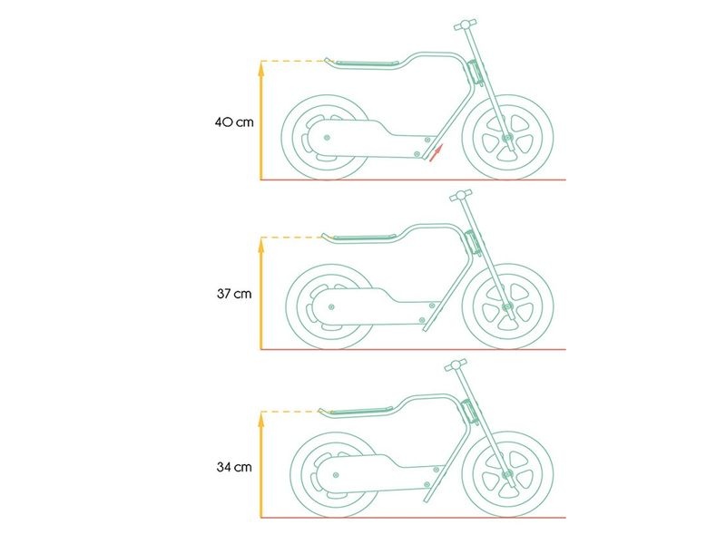 RideMe je vyrobeno z certifikovaného udržitelného březového multiplexu, který zajišťuje dlouhou životnost a odolnost. Materiál je neošetřený, což znamená, že neobsahuje žádné chemikálie, a přirozené dřevěné povrchy jsou pečlivě zaoblené, aby se předešlo jakémukoli riziku zranění. Velké profilované gumové pneumatiky zajišťují plynulou jízdu i na nerovném terénu. Dodatečně nabízí tři výškové polohy (34 cm, 37 cm, 40 cm) přizpůsobitelné rostoucímu dítěti.