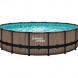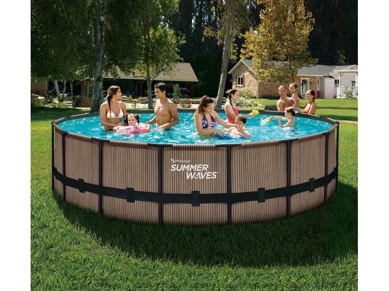 Rámová konstrukce nadzemního bazénu se skládá z trubek z pokovené oceli. Vnější stěna bazénu imitující dřevo velmi dobře zapadne téměř do jakékoli zahrady.