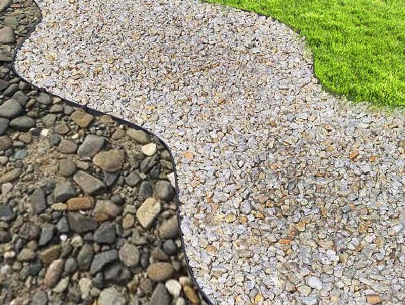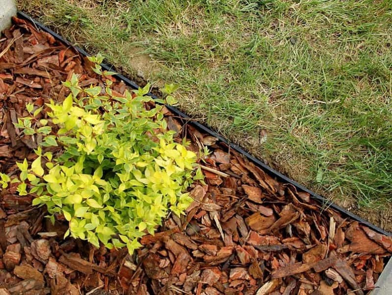 Neviditelný plastový obrubník oddělí trávník a záhon s mulčovací kůrou, trávník a kamínkový (štěrkový) záhon, trávník a zámkovou dlažbu, betonové plochy, chodníky, terasy nebo třeba okapové chodníčky.