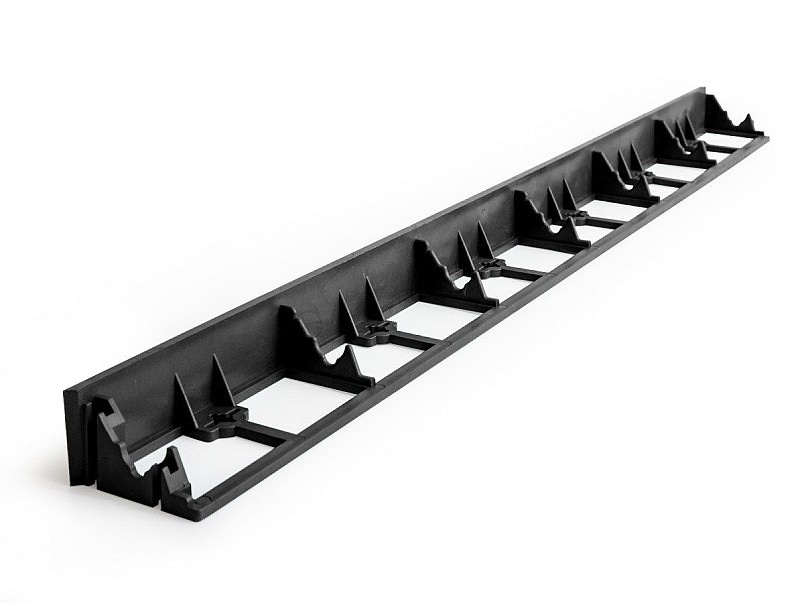 Pokud oddělujete dlažbu nebo chodníky, zvolte výšku obrubníku alespoň takovou, jaká je výška dlažby. Obrubníky se uchycují pomocí 25 cm dlouhých plastových hřebů (standardně nejsou součástí balení). Na 1 metr obrubníku jsou potřeba 2–3 hřeby (podle tvarové složitosti), v případě prudkých oblouků 5–6 hřebů.