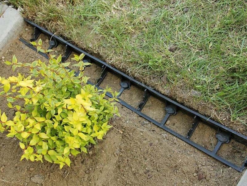 Plastový obrubník můžete tvarovat do různých oblouků nebo ho stočit do kruhu kolem stromů. Instaluje se pod rovinu terénu, tak aby bylo vidět cca 5 mm z jeho vrchní stěny.