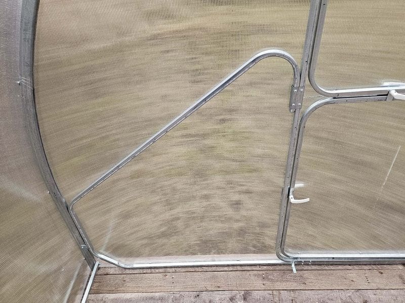 Díky této konstrukci je skleník ideální do vyšších poloh se silnou sněhovou nadílkou, ale stejně dobře poslouží i v nížinách. Přední a zadní čela jsou z výroby kompletně sešroubovaná, což zajišťuje vyšší pevnost celé konstrukce.
