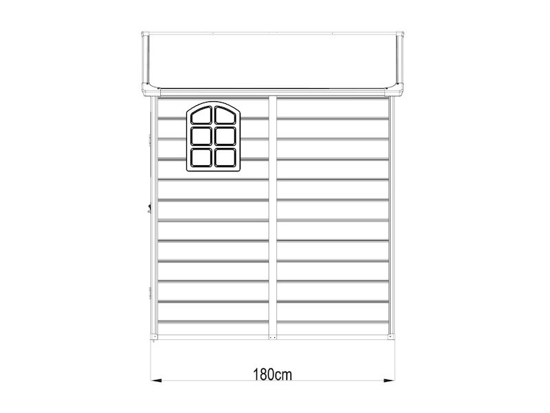 Boční okno, které lze umístit na pravou nebo levou stranu, dodává zahradnímu domku praktičnost a flexibilitu. Ventilační mřížka zajišťuje optimální odvětrávání a cirkulaci vzduchu uvnitř domku, což je klíčové pro udržení optimálního stavu uložených věcí.