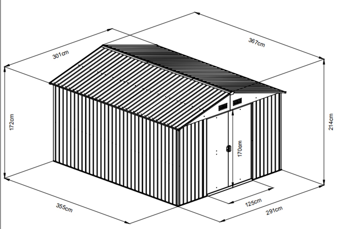 Kvalitní materiál s povrchovou úpravou – elektrolyticky pozinkovaný plech s žárově nanesenou barvou. Sedlová střecha, čelní posuvné dveře. Možnost uzamčení (zámek není obsahem dodávky).