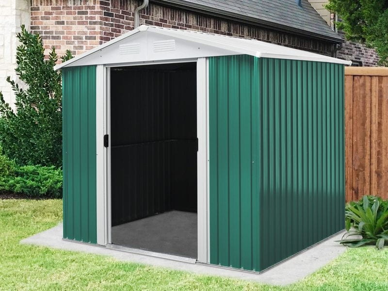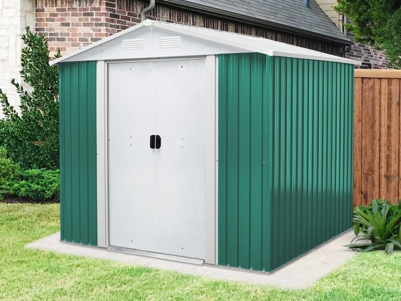 Plechové zahradní domky z americké výroby nabízí moderní design, barva, snadná montáž, celoroční použití. Pokud chcete navíc zabránit vstupu nepovolaným osobám, můžete zahradní domek jednoduše uzamknout (zámek není obsahem dodávky).