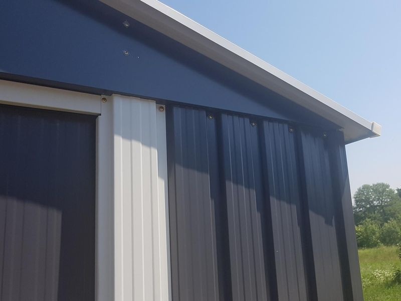 Kvalitní materiál s povrchovou úpravou – elektrolyticky pozinkovaný plech s žárově nanesenou barvou. Sedlová střecha, čelní posuvné dveře. Možnost uzamčení (zámek není obsahem dodávky).