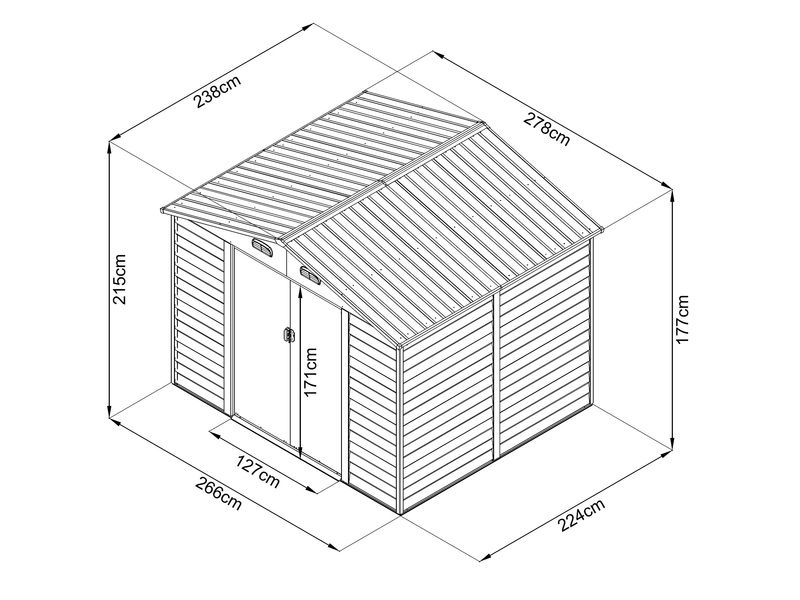 Kvalitní materiál s povrchovou úpravou – elektrolyticky pozinkovaný plech s žárově nanesenou barvou. Sedlová střecha, čelní posuvné dveře. Síla plechu stěn 0,25 mm a síla plechu nosné konstrukce 0,6 mm.