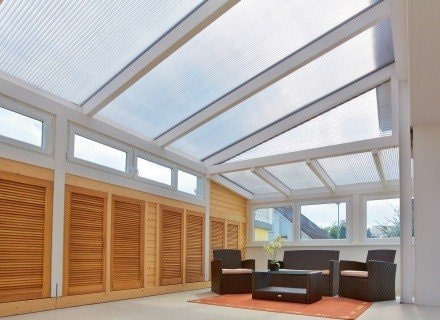 Vysoce kvalitní polykarbonátové desky jsou ideálním řešením pro zateplené prosklení stěn, případně střech. Dutinková struktura desek zároveň zabezpečuje v zimě udržení tepelné energie uvnitř, čímž šetří náklady na vytápění.