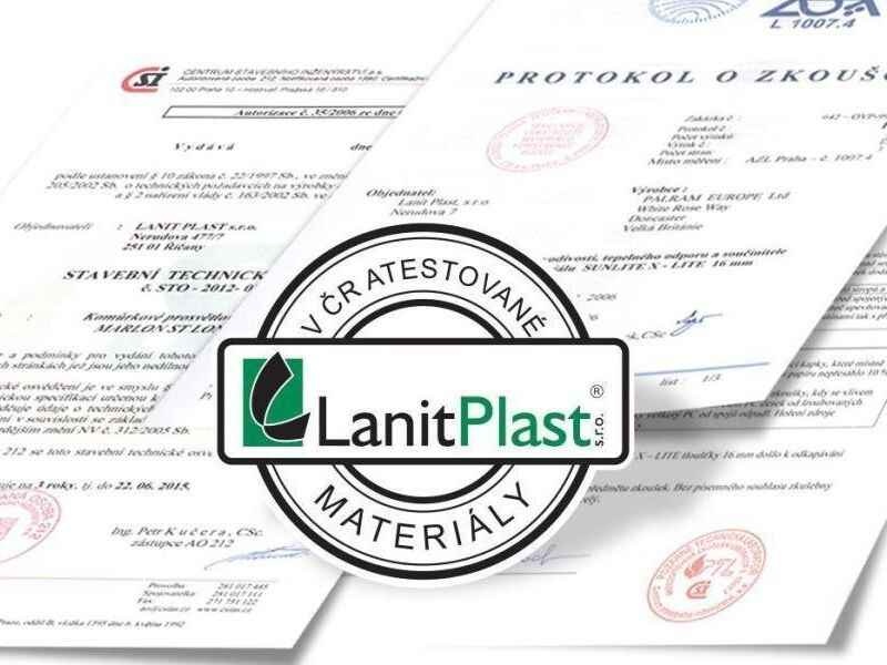 Skleník je prosklený dvoustěnným komůrkovým polykarbonátem o tloušťce 6 mm, který poskytuje vynikající tepelnou izolaci a vysokou propustnost světla. Polykarbonát Marlon z Velké Británie je vybaven silným UV filtrem, díky čemuž nekřehne ani nežloutne. Skleník je vybaven smluvní zárukou 10 let na nerozbitnost polykarbonátu krupobitím. Polykarbonátové desky jsou do hliníkových profilů kotveny ocelovými sponkami, což zaručuje stabilitu i při náročných povětrnostních podmínkách.