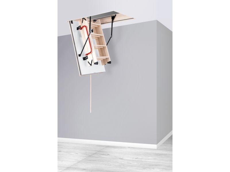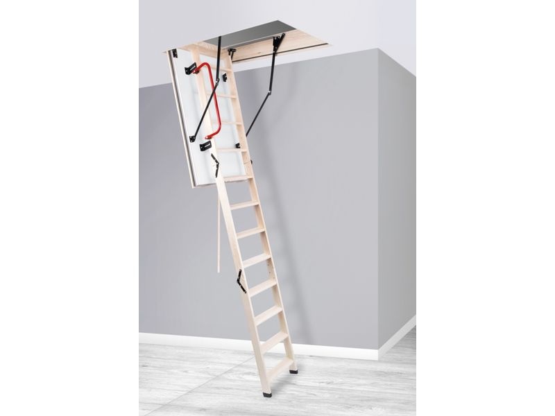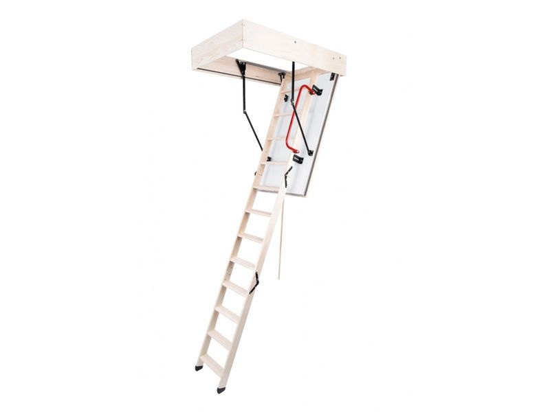 Protipožární schody jsou vyráběny pro maximální výšku podlaží 2800 mm a mají speciální 170 mm vysoký dřevěný rám. Schody mají 3-dílný výlezový žebřík.
