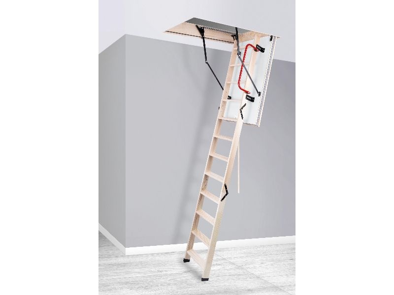 Půdní schody mají 3-dílný dřevěný výlezový žebřík.
