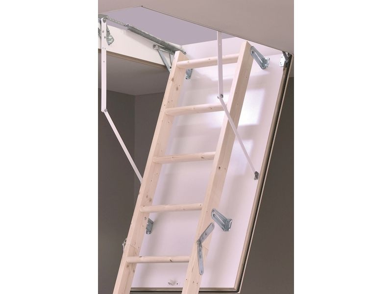 Půdní schody jsou opatřeny párem ocelových pružin, které brzdí pád při otevírání a napomáhají při zavírání.