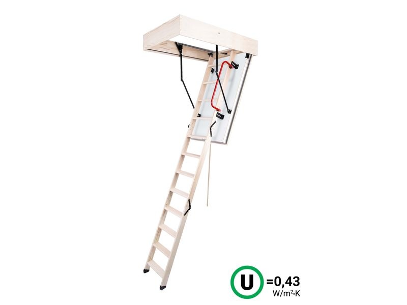 Protipožární půdní schody s izolací. Tyto skládací půdní schody slouží jako jednoduchý, praktický a zateplený výlez do půdních prostor kde je zapotřebí požární odolnost a zároveň velmi vysoké zateplení.