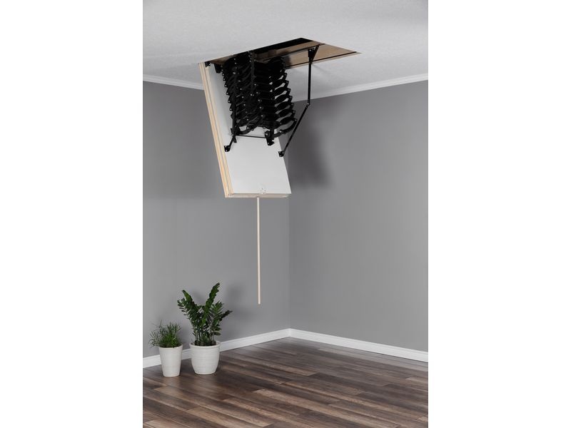 Stahovací půdní schody Oman Flex Polar jsou speciálně navrženy pro nízkoenergetické domy a oblasti, kde je klíčová dokonalá tepelná izolace. Tyto stahovací schody poskytují jednoduchý, praktický a zateplený výstup do půdních prostor, přičemž nůžkový žebřík lze roztahovat a stahovat jako harmoniku.