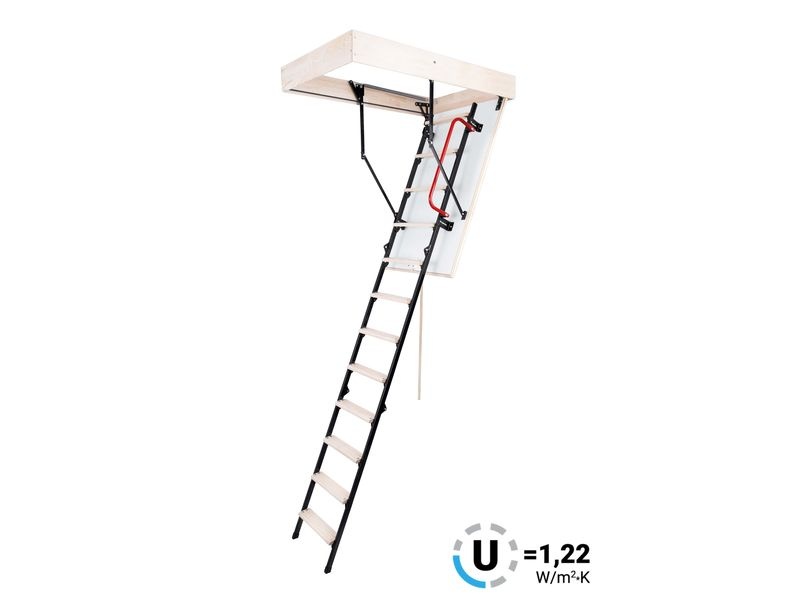 Skládací půdní schody Oman Stallux Termo poskytují snadný, praktický a tepelně izolovaný přístup do půdních prostor. Schody dopřejí pohodlný výstup a jsou vhodné tam, kde není kladen velký důraz na energetickou úspornost budovy.
