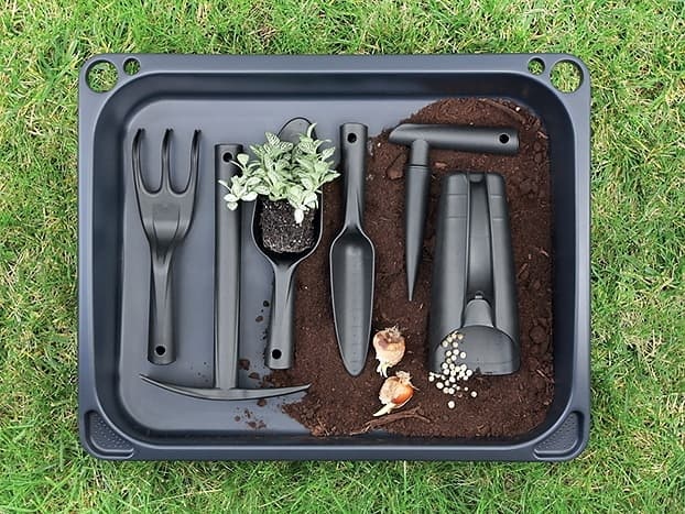 Sada zahradního nářadí obsahuje základná nástroje pro výsadbu a přesazování rostlin. Díky svým rozměrům je náčiní vhodné i pro pěstování v domácnosti. Sadu dodáváme zabalenou ve stahovacím pytlíku. Plastový sáček s nářadím je možné pohodlně zavěsit na háček.