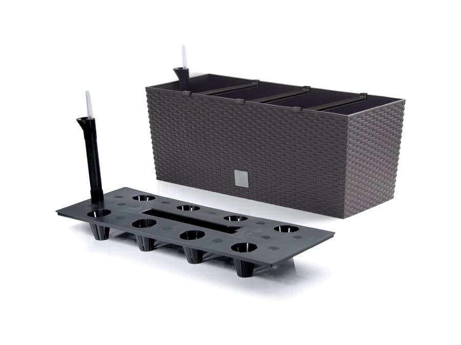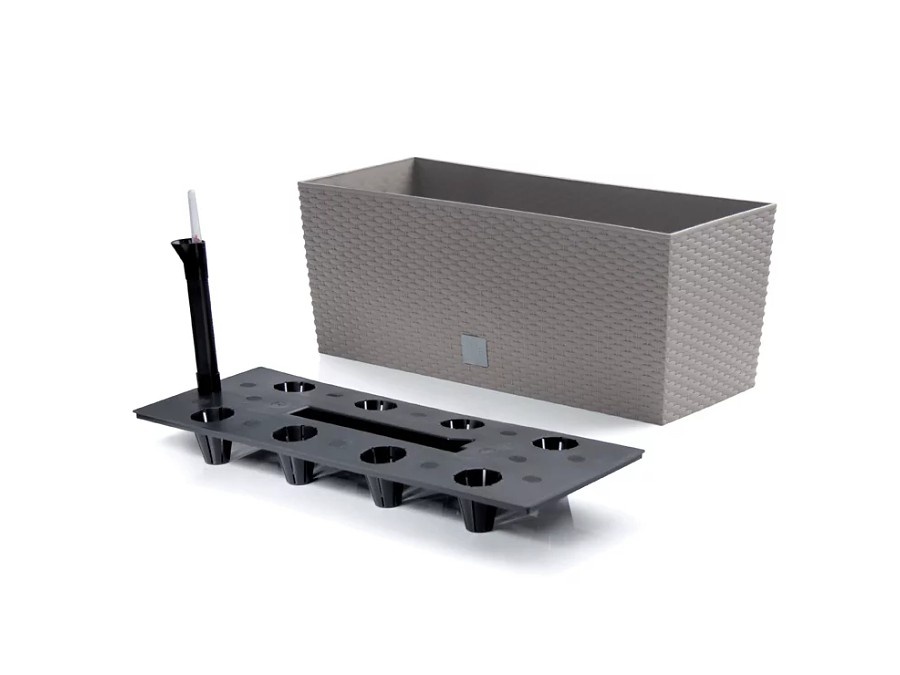 Odnímatelná vložka obsahuje 8 otvorů pro snadné uložení sazenic. Další předností truhlíku na balkon je samozavlažovací systém, který umožňuje rovnoměrné rozvádění zálivky ke kořenovému systému rostlin. V závislosti na druhu rostlin a umístění truhlíku vydrží výsadba až 3 týdny bez zavlažování.