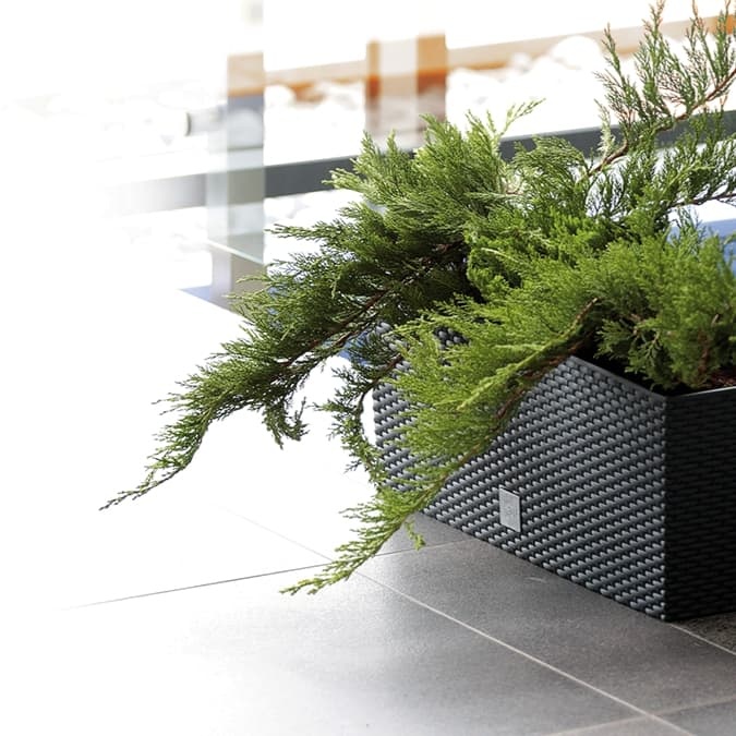 Samozavlažovací truhlíky jsou vyrobeny z odolného plastu, který věrně imituje ratanový výplet. Materiál je odolný proti UV záření, dešti i větru, takže truhlíky na balkoně neohrozí sluneční žár ani nevlídné počasí.