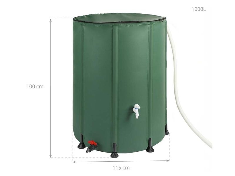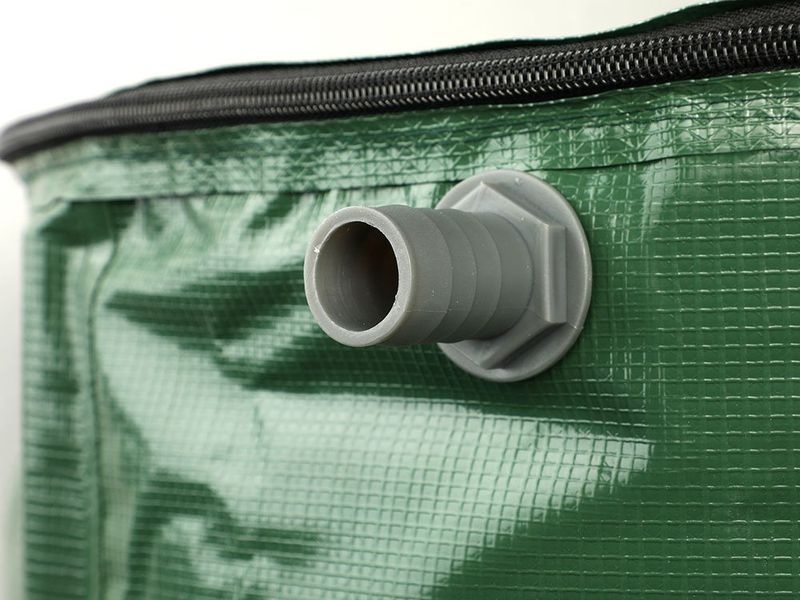 Sud je vyroben z odolného 600D PVC a podepřen rámem z 10 PVC tyčí (Ø 20 mm). Víko je vybaveno zipem a integrovanou mřížkou proti nečistotám, takže voda zůstává čistá. Praktické ventily umožňují použití jak s hadicí, tak s konví. Nechybí ani přepad, který zabrání přeplnění. Jednoduchý montážní systém umožní sud postavit během krátké chvíle a bez speciálního nářadí.