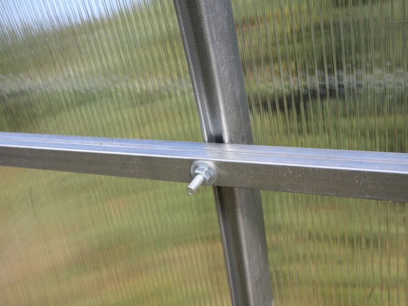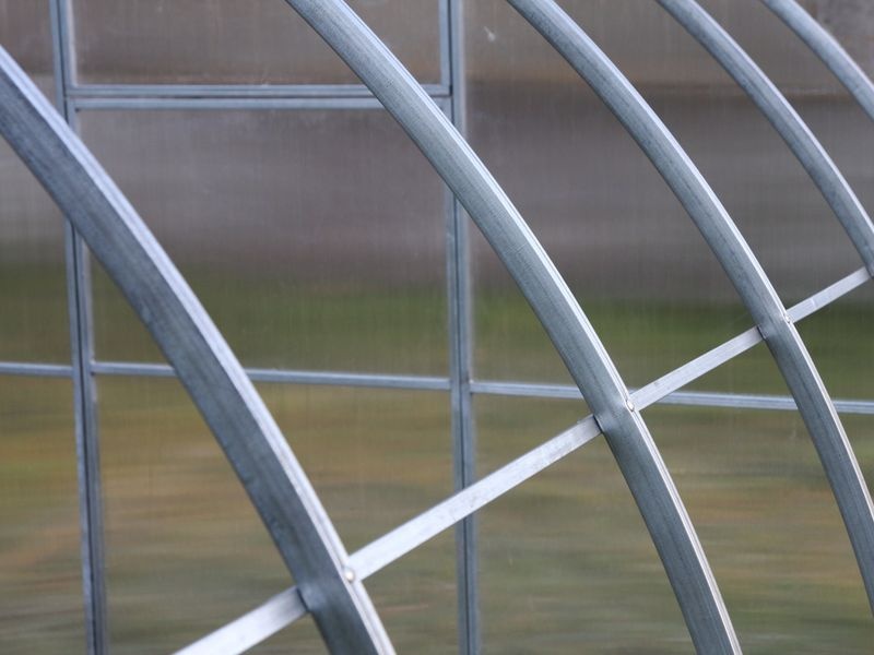 Konstrukce polykarbonátového skleníku je z masivních obloukových trubek 40 × 20 mm (podélníky a vzpěry 20 × 15 mm). Materiál profilů je galvanicky pozinkovaný = na povrchu je vytvořená silná vrstva nekorodujícího zinku. Jednotlivá žebra nosných oblouků jsou od sebe vzdálena pouhých 67 cm, což je velká výhoda tohoto modelu skleníku oproti jiným výrobkům.