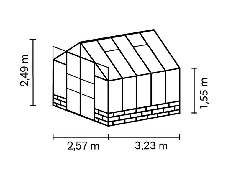 Podezdívka dodává skleníku elegantní vzhled a zlepšuje jeho celkovou pevnost. Výhodou tohoto skleníku je také extrémně nízký práh – do skleníku tak pohodlně vjedete i se zahradním kolečkem nebo vozíkem.