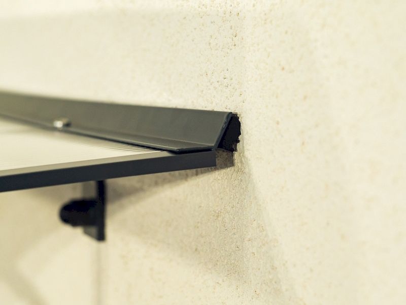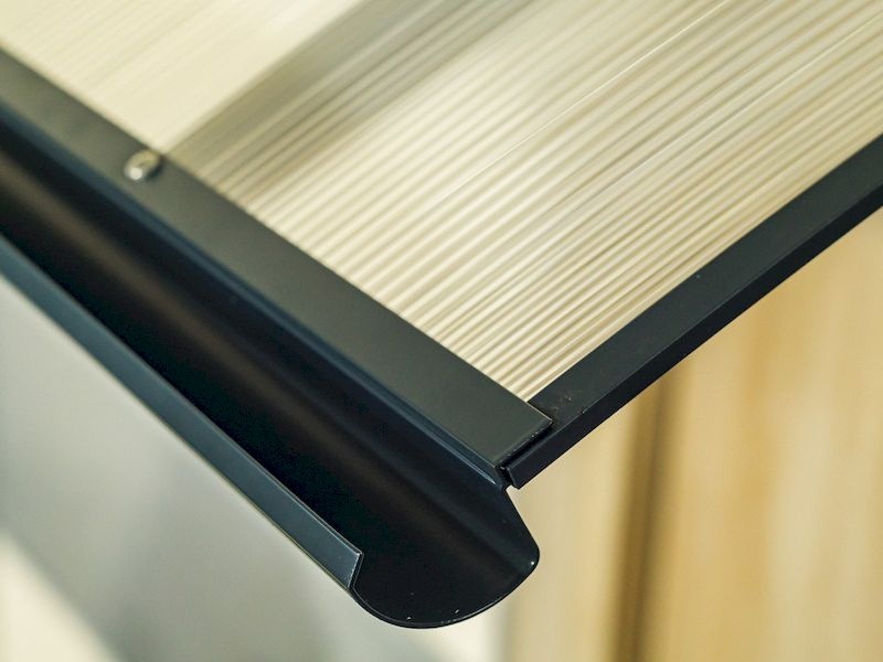 Stříška nad dveře je vyrobená z práškově lakovaného hliníku. Na rozdíl od stříšek s plastovou konstrukcí však hliníková konstrukce perfektně odolává vlivům počasí, i po letech je pevná a stabilní. V zimě dveřní stříška vlivem rmazu nekřehne a ani na silném letním slunci nedochází na zastřešení ke změnám barvy.